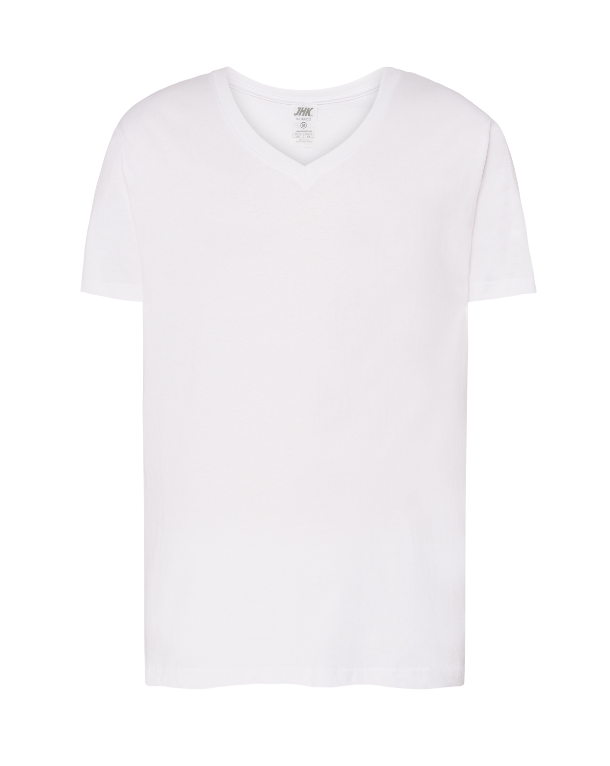 Ανδρική κοντομάνικη μπλούζα με V-λαιμό από 100% μερσεριζέ βαμβάκι. Έχει αφαιρούμενη ετικέτα και πλευρικές ραφές. Είναι κατάλληλο για στάμπα και μεταξοτυπία. Το κολλάρο είναι 1Χ1 rib λάστιχο. Έχει ρέλι γαζωμένο από ώμο σε ώμο.
