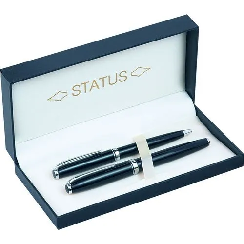 Σετ στυλό-ρόλερ πολυτελείας Mercury μάρκας STATUS μαύρο με ασημί λεπτομέρειες σε μαύρο κουτί με σατέν εσωτερικά