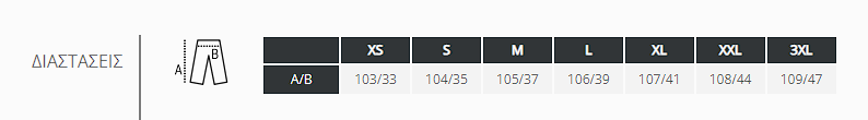Λεπτομέρειες: 2 ιταλικές τσέπες – 1 πίσω εξωτερική τσέπη – Ελαστικό ριπ 2×2 στη μέση και τους αστραγάλους – Πλακέ κορδόνια σύσφιξης στη μέση με στοπ στον ίδιο τόνο